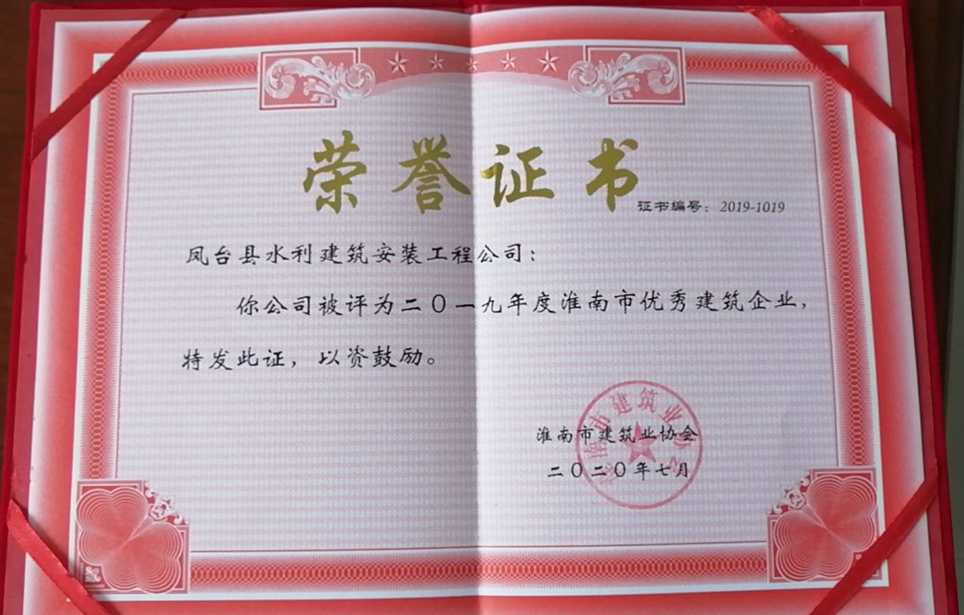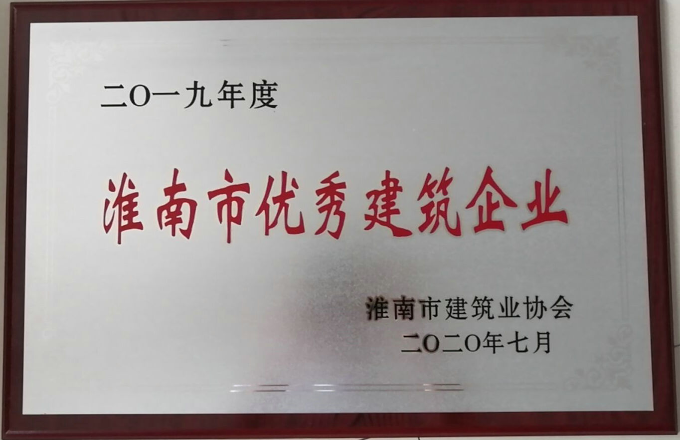 水建公司榮獲“2019年淮南市優秀建筑企業”稱號